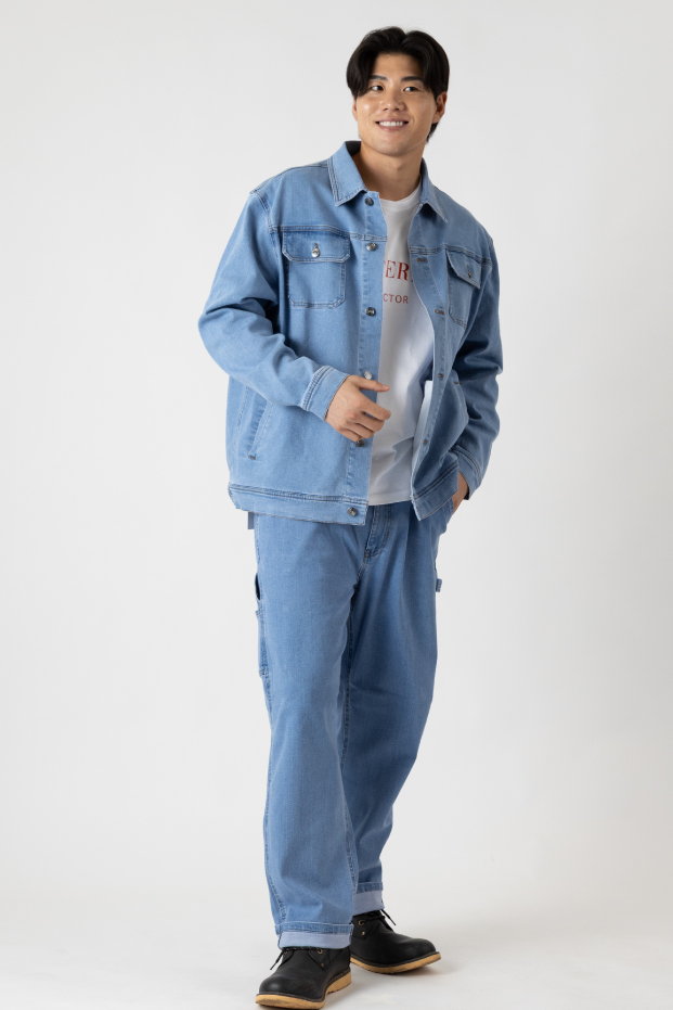 4WAYストレッチ シャーリング ペインター デニム パンツ ルーズフィット