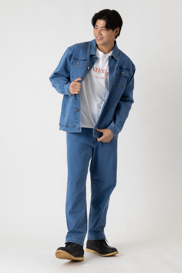 4WAYストレッチ シャーリング デニム パンツ ルーズフィット