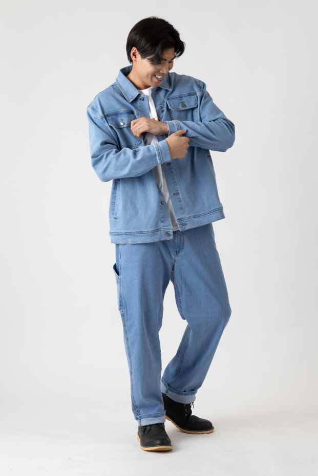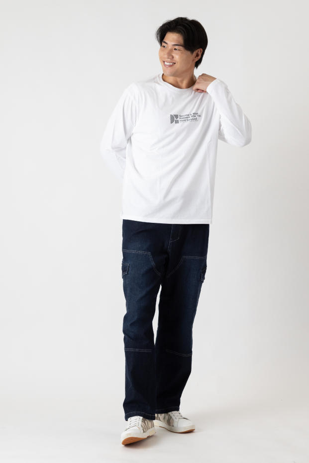 ダブルニー ルーズフィット ストレッチ デニム パンツ